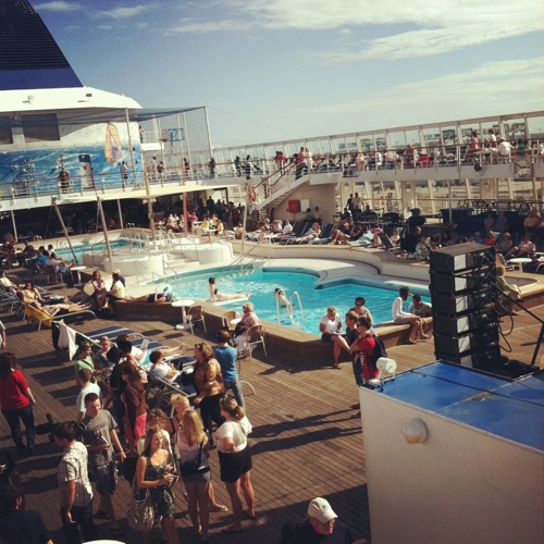 We are so blessed to be able to take part in each and everyone of these amazing cruises. Matt is friends with one of the owners of the company, so we get the hook ups and get to work/enjoy the cruise complementary. This year we were “Stage Managers” for the pool deck, which was the best job we have had thus far.