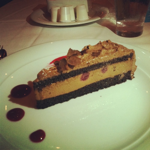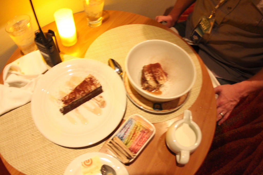 And dessert was enjoyed every night, but I was not impressed ๐ Plus the lighting on the boat wasn’t very good, so my dessert shots are pretty poor. Here we have Tarimasu and Flowerless Chocolate Cake.