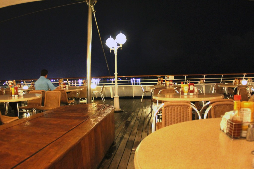 Most every night we got a HOT DRINK and chilled on the deck after all the shows. Sometimes we played Farkle or just stayed up late chatting. The best thing about the Cruise was that we had no internet or cell phone service, so we truly were on VACATION!