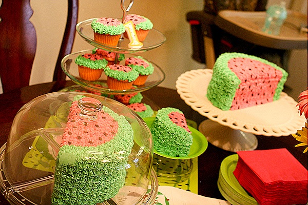 D made all of the cute watermelon cakes! Man she is one creative cat. The theme of the party was an outdoor summer picnic. So cute and so perfect!