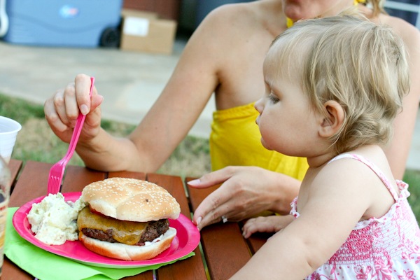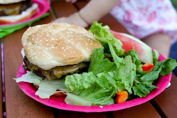 James makes the best burgers ( James is D’s Hubby and little E’s Dad). I don’t know what it is, but it always melts in my mouth!