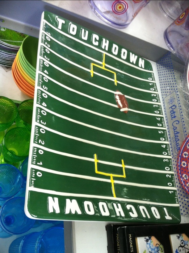 Then while running errands somehow I wondered into Tuesday Morning’s ๐ but I found this ceramic plate for $6 and knew Hubby would love it! Superbowl Party plate ๐
