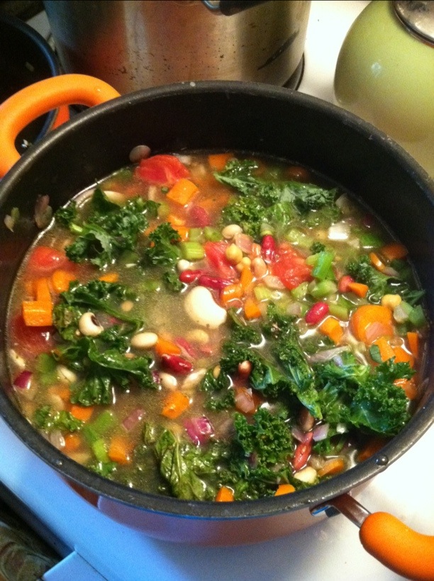 Basically I just made the TJ’s 17 bean soup and added fresh tomatoes and Kale to the mix… hubby made the Rice Krispies ๐