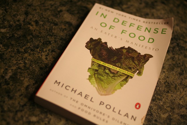 1. If you haven’t picked up one of Michael Pollan’s books on food, I would highly suggest it! I just finished “In Defense of Food”, and he really made me fall back in love with real foods and enjoying it for what it is and not for the nutrients,. Instead of food, weâ€