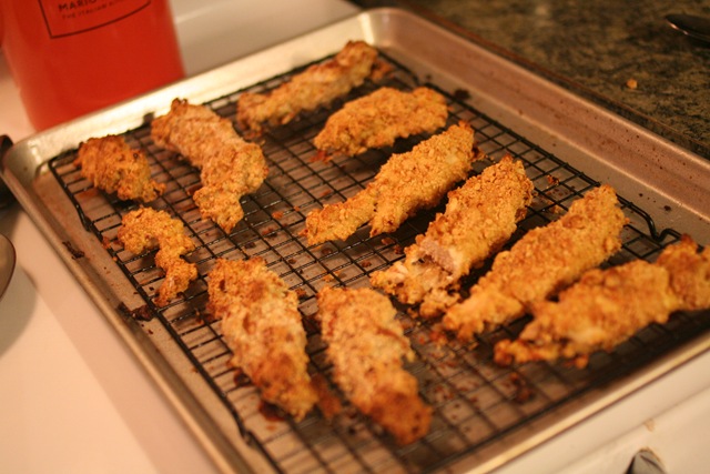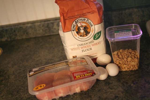 Peanut/Almond Encrusted Baked Chicken Fingers (a mouthful I know)