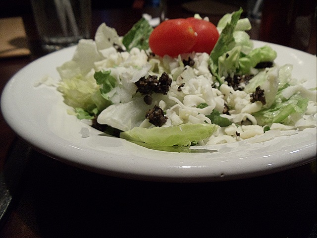 My meal came with a side salad. It had two cherry tomatoes (really?), iced olives, and a ton of cheese that I took off. It was decent. I guess that’s what most antipasta salads are like.