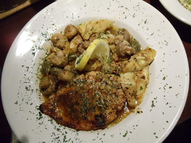 My dinner made up for it all! The chicken picata was divine. Mushrooms, artichoke hearts, lemon, and the tastiest chicken all in a wonderful wine sauce. I couldn’t even finish it was so much, but I did eat all the chicken. It came with a side bowl of pasta too, but I didn’t get it, I knew I would be stuffed!