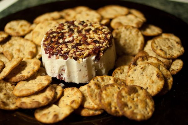 We started with a gorgonzola, cranberry, and pecan cheese ball from Trader Joe’s.