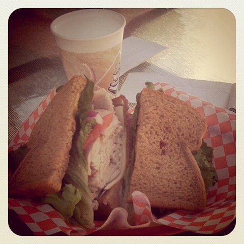 Then I ran a ton or errands as I am taking the day off to get stuff together so that I can head to the beach this weekend for my Mom’s Birthday. After running all over I enjoyed this delicious, HUGE turkey sandwich from my favorite local shop called the White Rabbit. Non REAL bread, not as good as homemade!