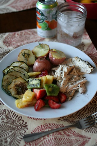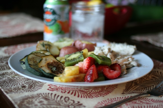 I also grilled up fresh zucchini, red potatoes, and made a fresh fruit salad.