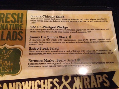 They have some fun looking salads on their menu as well as all kinds of other yummy dishes! Everything has names that are unique to Redlands like the Redlands Bowl Fries.
