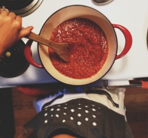 I hope you don’t mind, but we have so many veggies growing in our garden that I just had to make some homemade marinara with a kick!