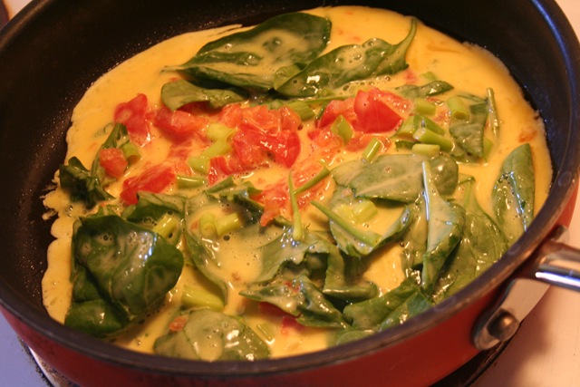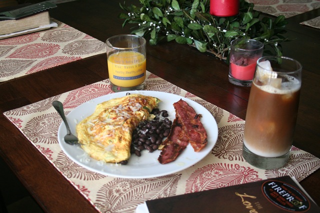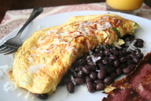 I topped my Veggie Omelet with a little light provolone and placed on a bed of black beans.