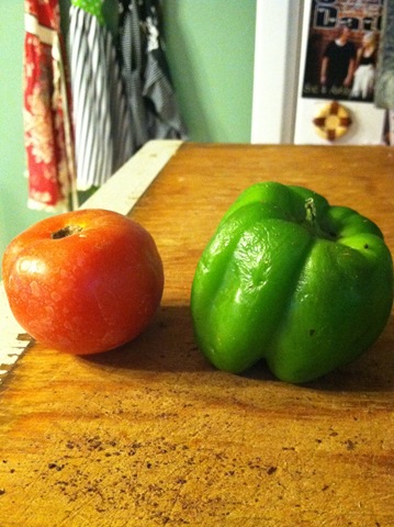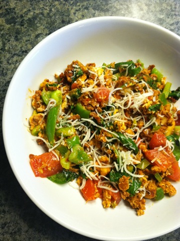 After teaching two classes I came home and made a killer veggie scramble with fresh veggies from the garden 🙂