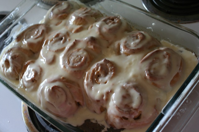 Frost warm rolls with the cream cheese frosting and serve immediately.