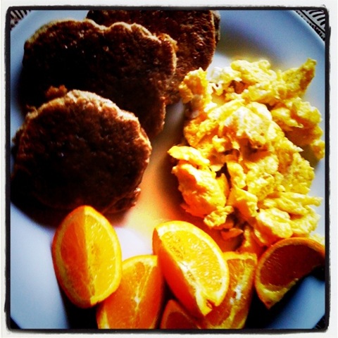 After the race it was almost noon and I was FREEZING COLD and starved! As soon as I got home I took a long hot shower and then had the best brunch ever! I enjoyed some banana pancakes from yesterday, with eggs and fresh oranges. (all iPhone pics today, I left my camera at a friends house).