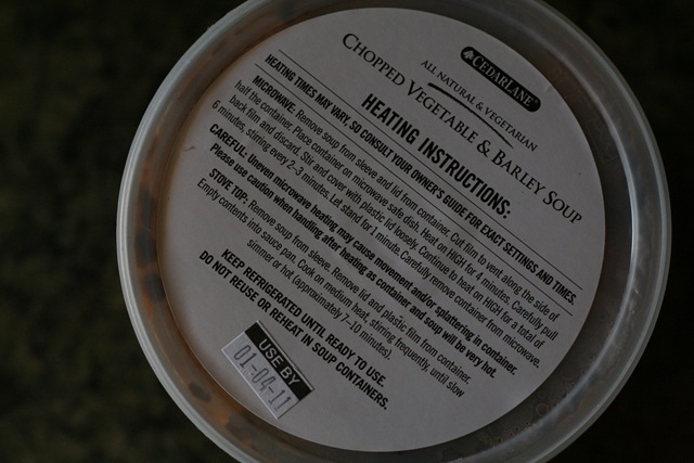 Yesterday we found another GREAT find at Costco, Chopped Vegetable & Barley Soup by CederLane.
