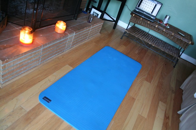 The Yoga studio I go to is about 20 minutes away so I have to get up a little earlier then normal. I love it there, but I have to go down the hill for KB tonight so I thought I would save the trip and create my own little studio by the fireside.