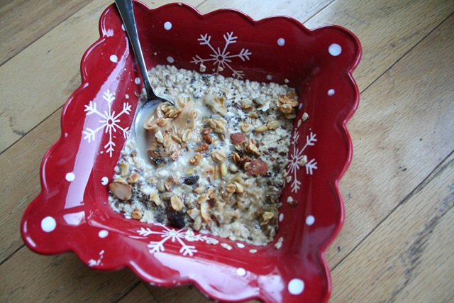 A pretty bowl of apple cinnamon oats 🙂 I know Meghann would appreciate the snowflakes in this bowl! If I ever see another one I will send it your way!!!